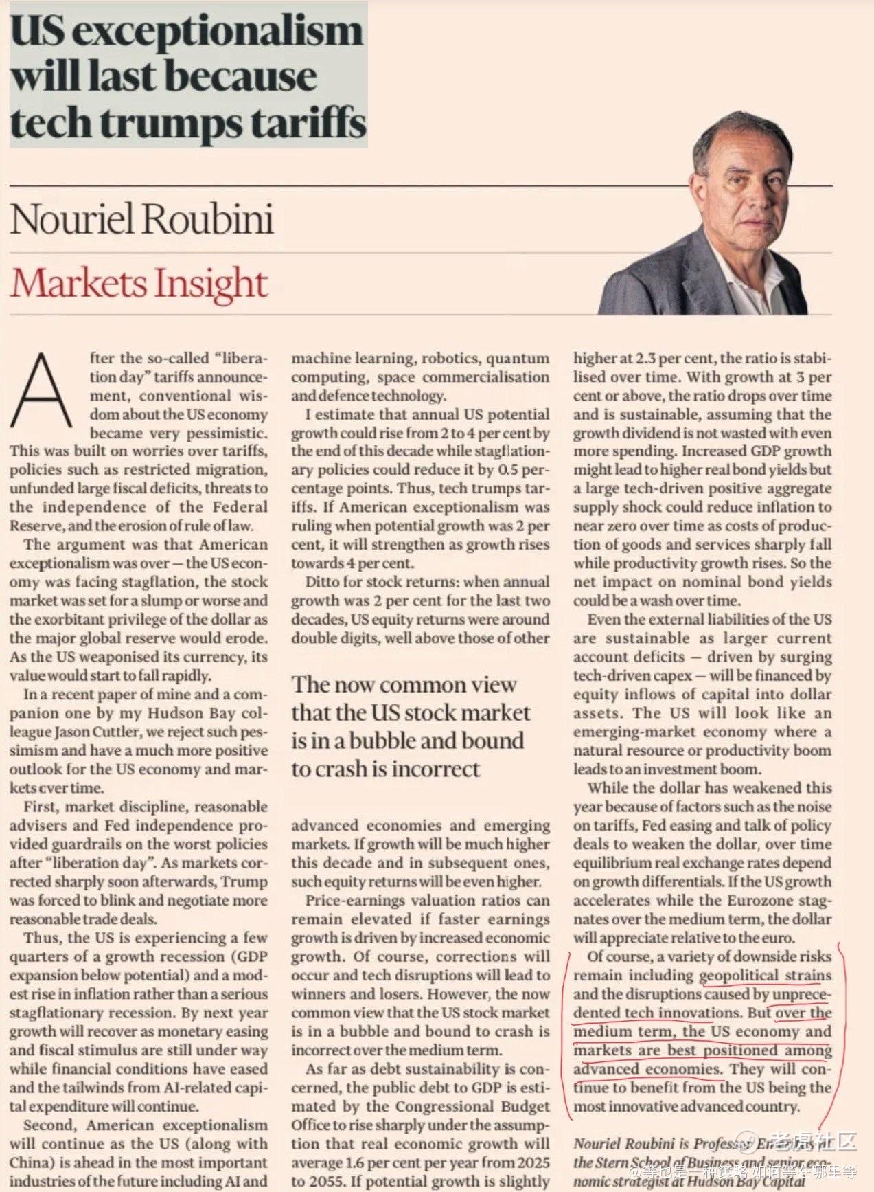 末日博士 Roibini,是当年预言2008金融危机最出名的经济学家。