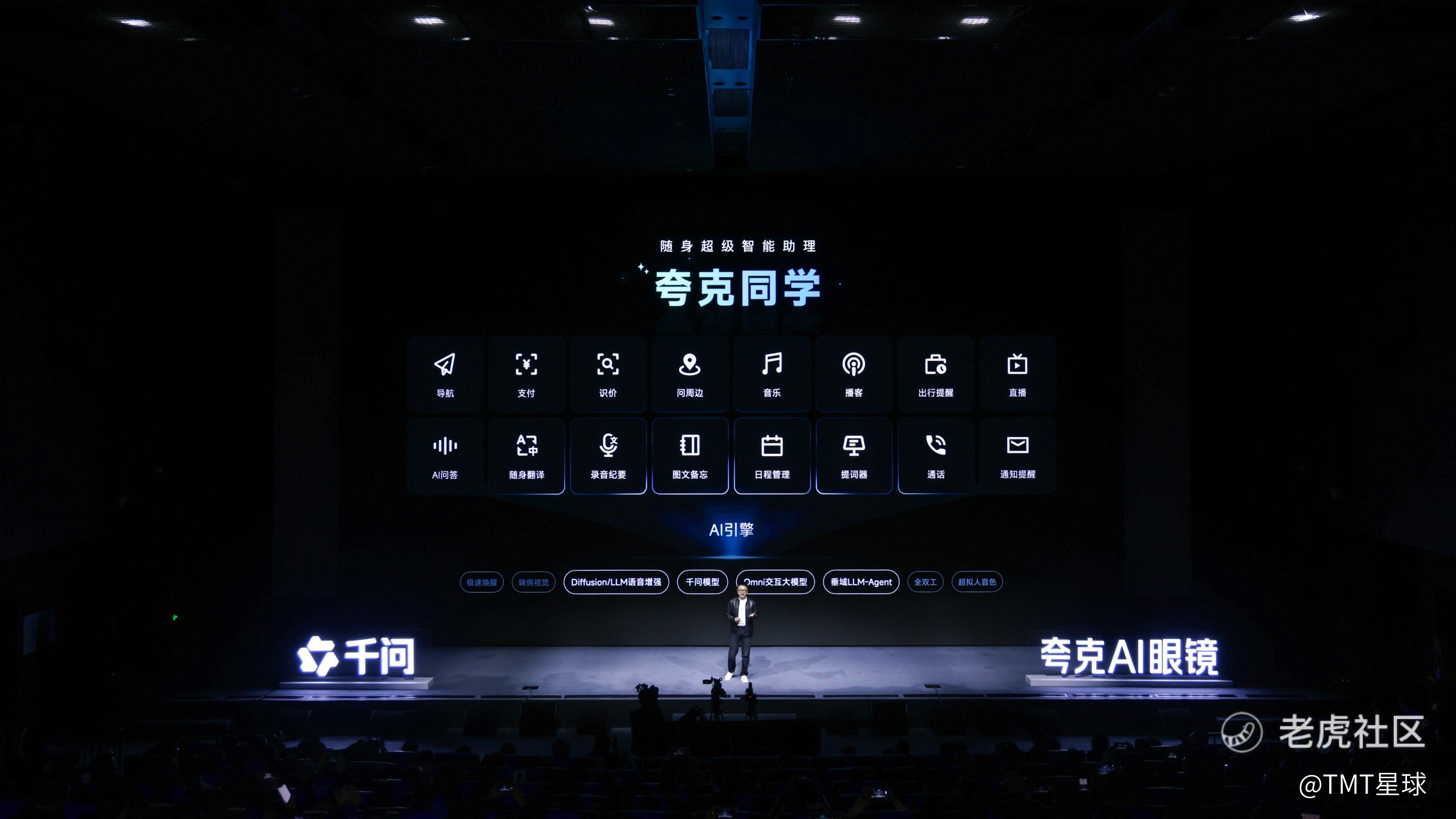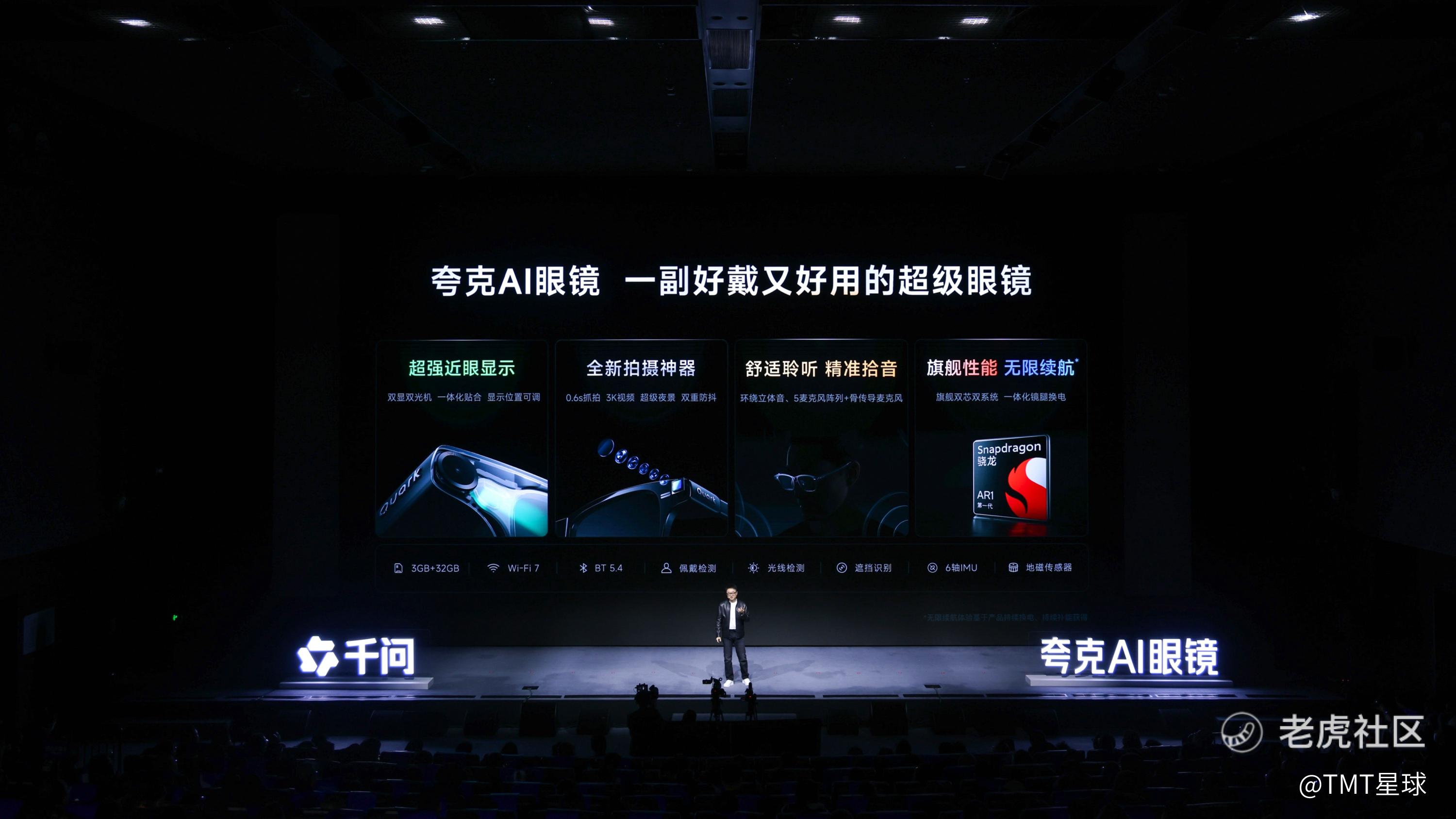 硬件层面,夸克AI眼镜S1搭载双旗舰芯片,采用双光机双目显示,国内首创合像距可调,亮度可达4000nits,保证户外环境下显示清晰可见。产品配有五个麦克风阵列加骨传导,能够更精准地拾取人声、过滤环境噪音,让用户在地铁、街头等嘈杂场景下也能自然地与千问对话。