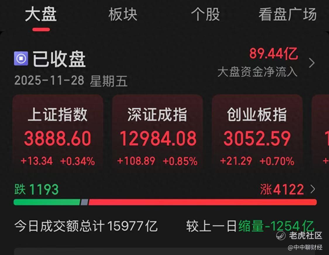 $上证指数(000001.SH)$ 天是11月份最后一个交易日,主要指数虽然涨幅不大,但都是以红盘收盘,个股涨势也不错,全市场有4000多只上涨的股票,算得上普涨格局,美中不足的是,两市成交额仅为1.59万亿元,与前一个交易日相比,缩量超过1200亿元,表明资金有所谨慎。下面,我们分析一下板块走势: