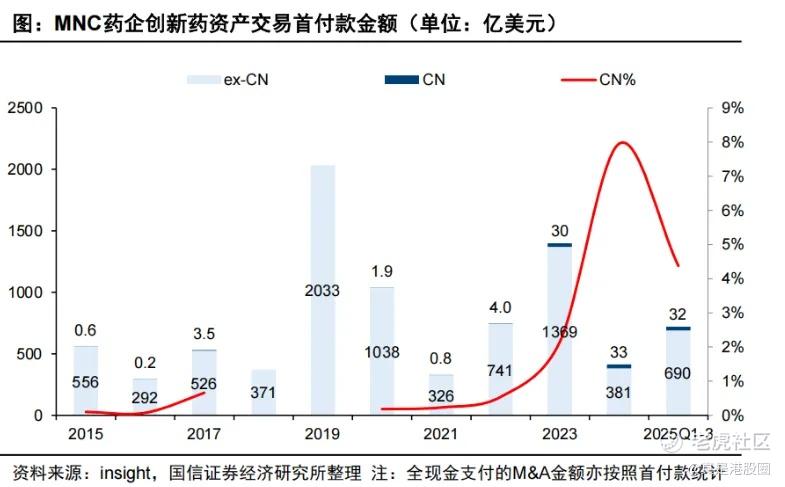 而根据统计,单看第三季度的交易金额,2025年Q3与中国相关的BD金额为329亿美元,而去年同期的BD金额约为306亿美元,金额基本持平。