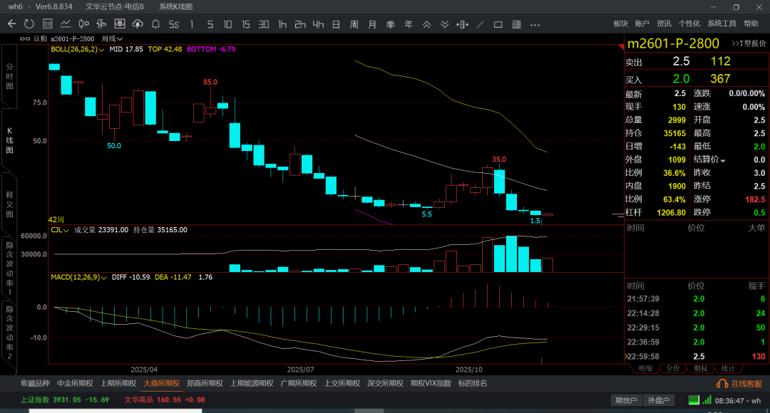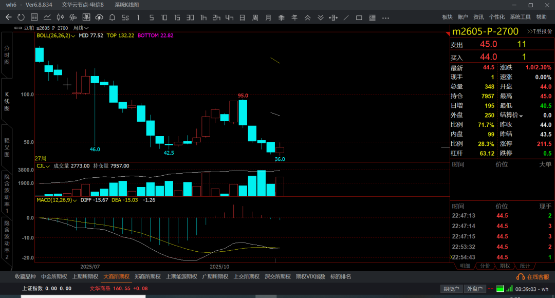 现在又可以逐步的卖沽了,不过的选择一些远期罢了,下一个月合约是m2605了,可以卖沽2700即可,给到就被动行权,不给就收取权利金了,反正也是要在这里进货的有什么关系呢,好比巴菲特在低位卖沽了可口可乐的期权一样,给到价格就进货,不给到就吃权利金,稳赢。
