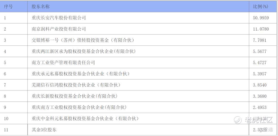 此次交易前,重庆长安汽车股份有限公司持股为50.9959%,南京润科产业投资有限公司持股为11.078%,交银博裕一号(苏州)债转股投资基金(有限合伙)持股为7.7081%;