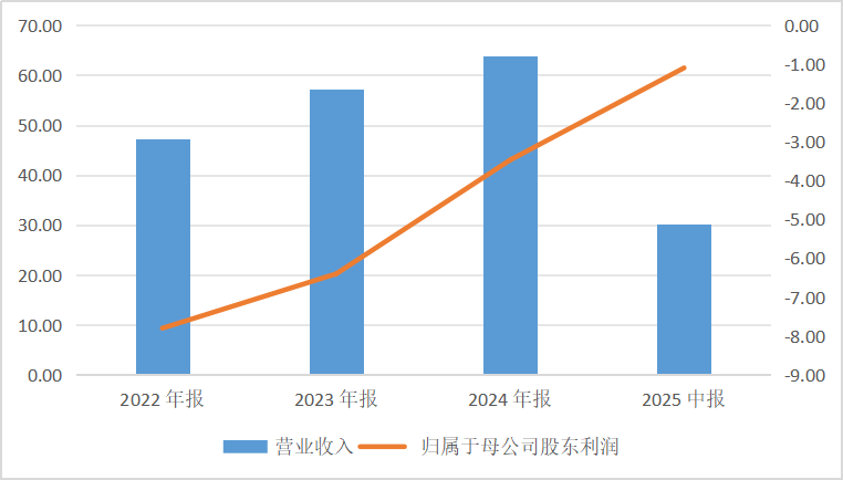 2022-2024年,公司经营活动现金流净额分别为-7.41亿元、-3.78亿元和-2.04亿元,呈现逐年改善趋势。2025年上半年,公司经营活动现金流首次实现转正,净流入8330万元。