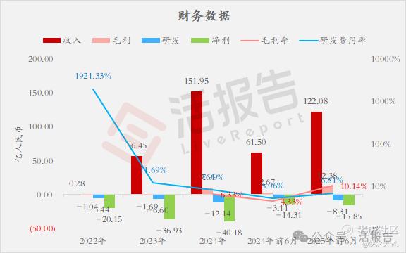 毛利分别约为人民币-1.04亿、-1.69亿、9.61亿、2.67亿、12.38亿,2025年前6月同比+364.37%;