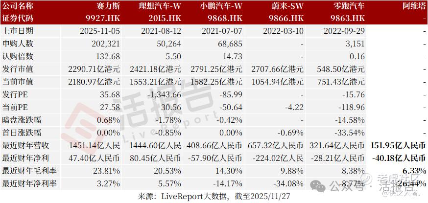 同行业IPO可比公司:赛力斯、理想汽车、小鹏汽车、蔚来、零跑汽车