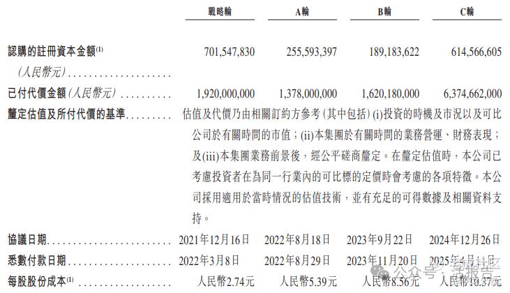 公司上市前经历了多轮融资,累计融资达113亿元人民币。在2024年12月的C轮最新融资中,每股成本约为10.37元人民币,对应公司的投后估值约为318亿人民币。