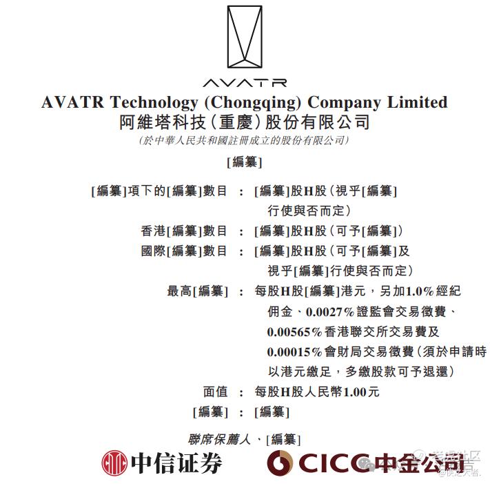 **获悉,阿维塔科技(重庆)股份有限公司AVATR Technology (Chongqing) Company Limited(简称“阿维塔”)于2025年11月27日向港交所递交上市申请,拟在香港主板上市。这是该公司第1次递表。