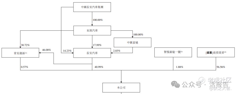 长安汽车(000625.SZ)直接持股40.99%,并通过常安创新间接持股0.57,合计持股约41.57%,其控股公司中国长安汽车集团直接及通过辰致汽车及中汇富通间接持股35.04%;