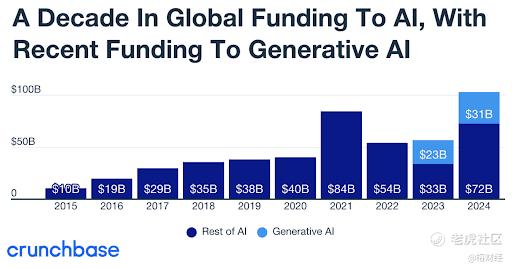 一组来自Crunchbase的数据勾勒出AI赛道的狂热:2015年全球AI投资仅约百亿美元,2021年因生成式AI爆发跃升至840亿美元,2024年总规模突破720亿美元,其中生成式AI占比近半。HumanX与Crunchbase联合发布的报告更揭示:AI预测引擎显示,HumanX舞台展示的近30%企业将成明年收购目标,而2023年至今,Nvidia、Databricks等巨头已发起超50起AI相关并购。