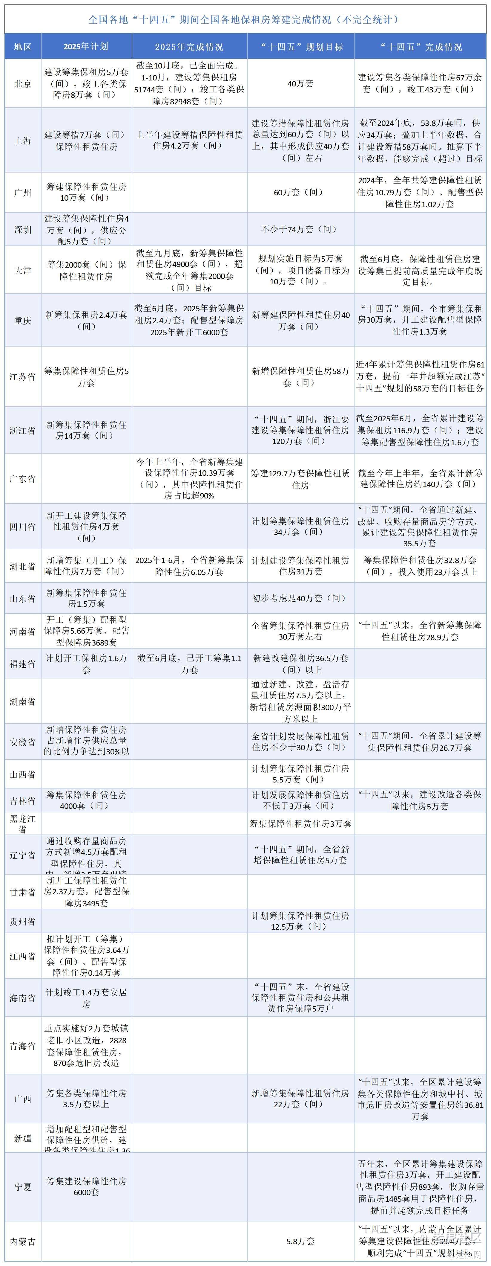 2025年作为“十四五”规划收官之年,全国保障性租赁住房筹集建设已进入冲刺收尾阶段。