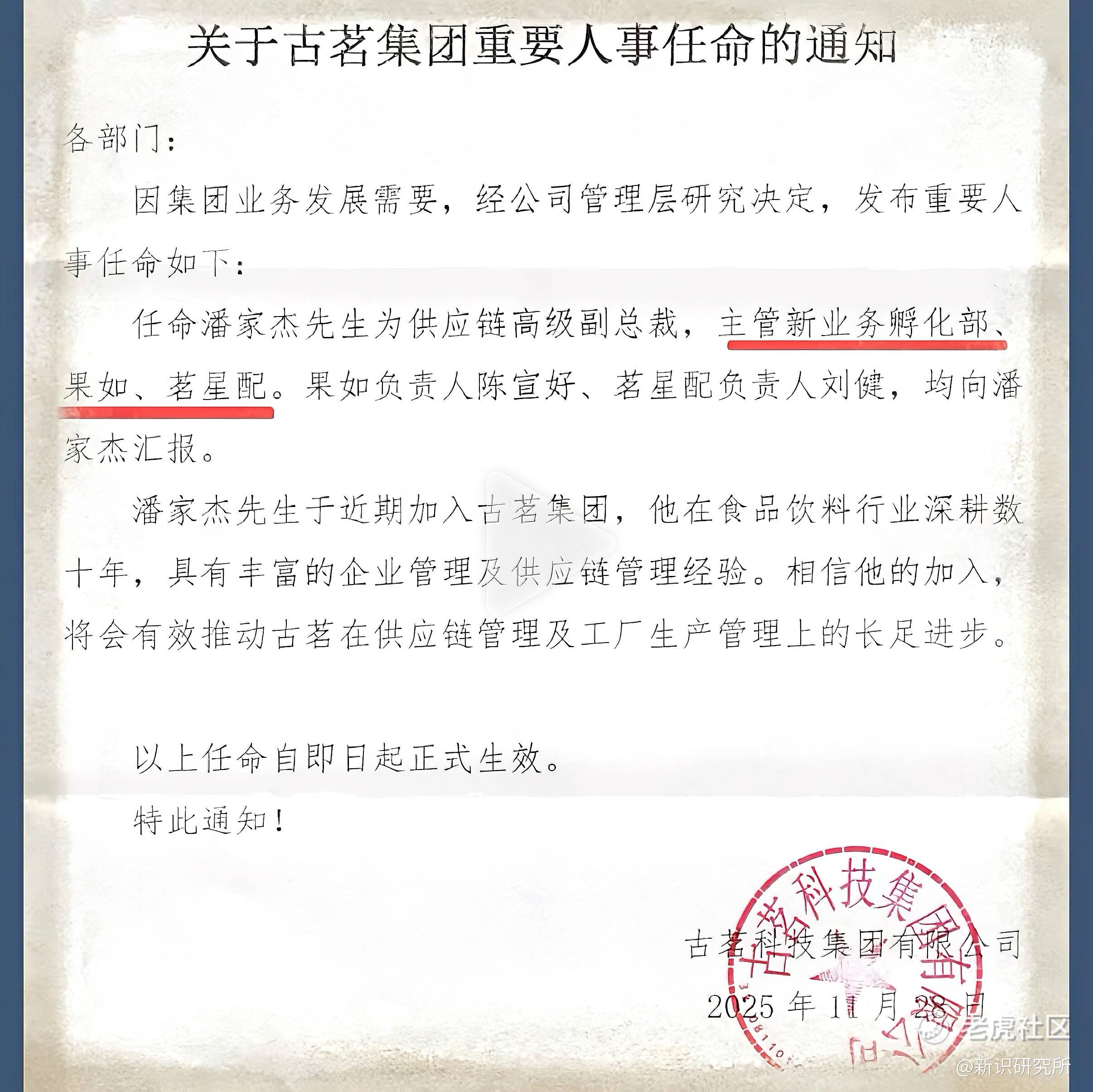 12月1日,新茶饮行业传来重磅消息:原娃哈哈集团董事、常务副总经理潘家杰已于11月28日正式入职古茗,担任供应链高级副总裁,主管新业务孵化及供应链两大核心供应链板块。
