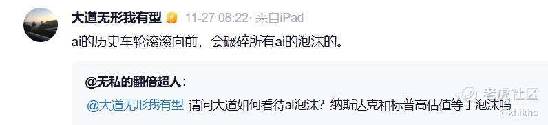 今天看到段永平的发言,他说“ai的历史车轮滚滚向前,会碾碎所有ai的泡沫”,这么肯定的语气,哈哈。其实,我觉得老段这句话隐含了两个核心观点:AI的发展不可逆转,以及泡沫终将被历史淘汰。