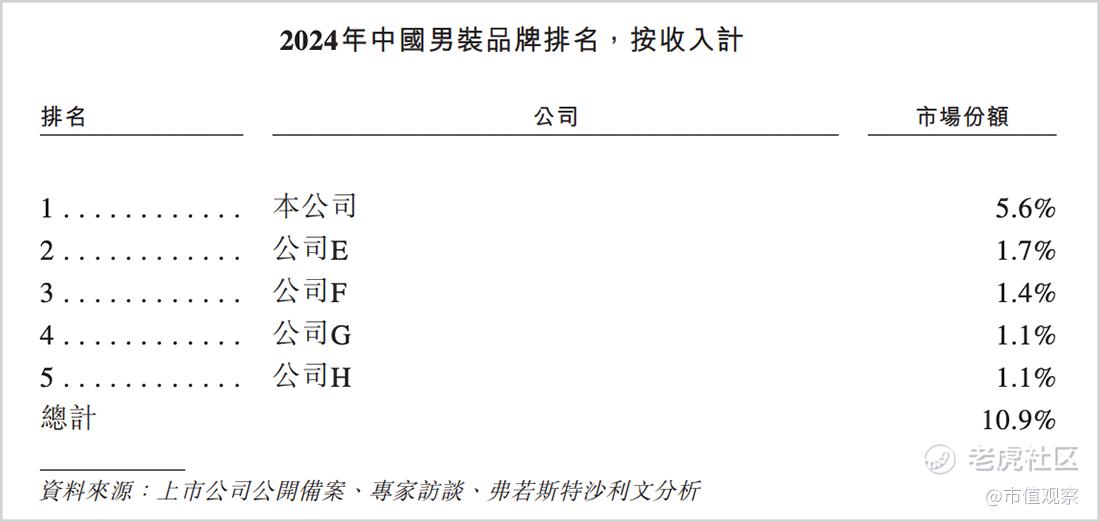 在商业运营层面,海澜之家用轻资产加盟模式构建庞大线下网络,用高密度广告投放建立品牌心智,不仅连续多年稳居中国男装品类收入第一,2024年市场份额更是超过2到5名的总和,辉煌程度无需多言。
