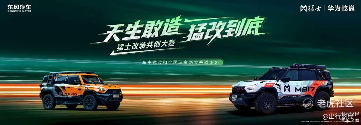 为激发更多越野玩家的创造力,猛士汽车还面向所有猛士新老车主和广大改装爱好者,同步启动了“天生敢造,猛改到底”猛士共创改装大赛,猛士汽车App、小程序等参赛通道已全面开启。