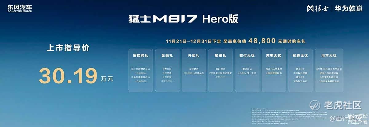 越野更强悍,改装更自由。 猛士M817 Hero版在广州车展以30.19万元的价格宣告上市,这款定位为“越野改装玩家”的越野车进一步拓展了“更城更野更远方”的场景边界。