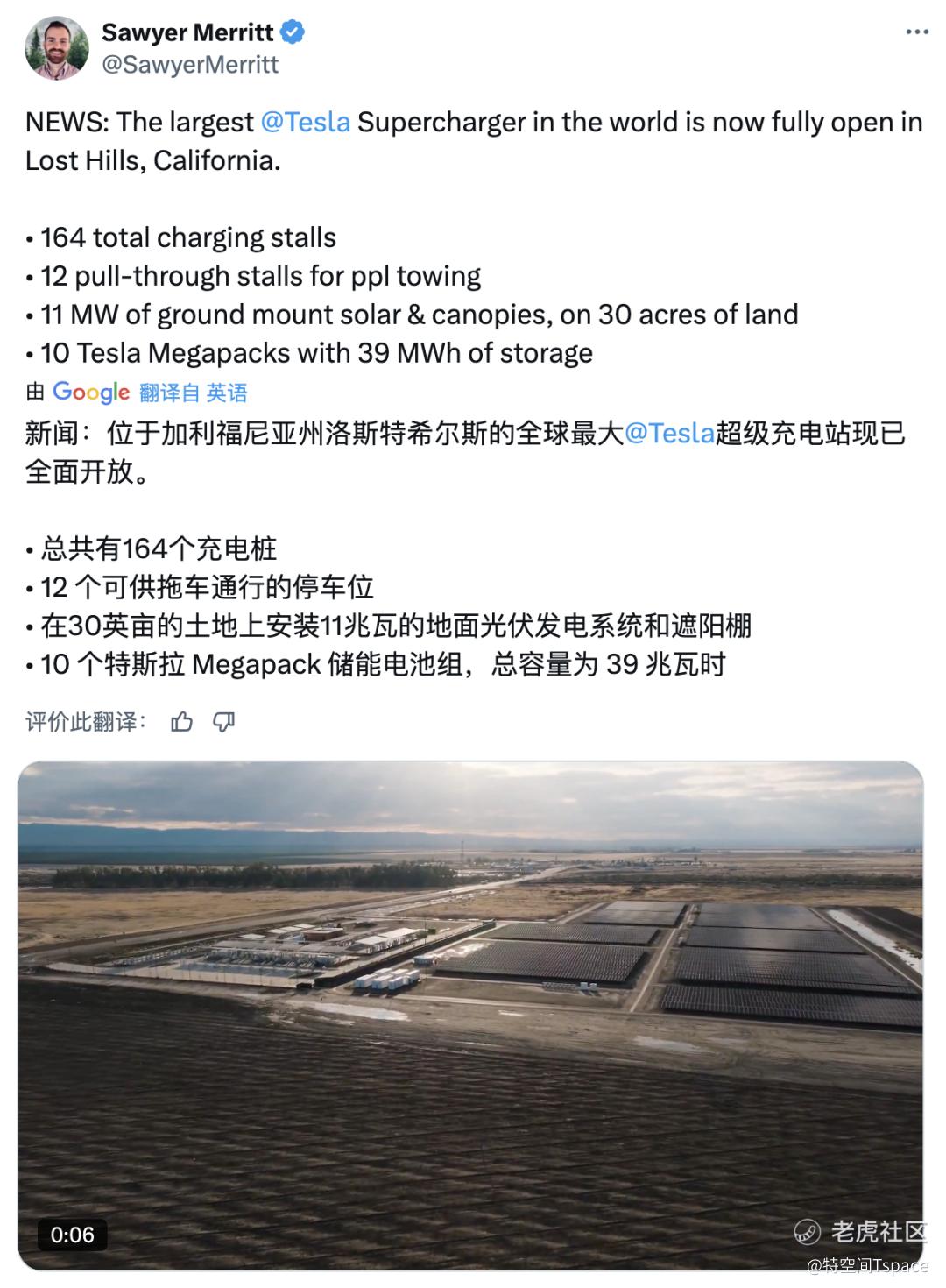 特斯拉全球最大超充站!一共164个充电车位,特斯拉把太阳能充电做到这种规模了
