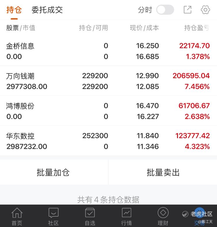 今天早盘创业板快速拉升后,逐步回落,最终形成了指数、个股、情绪的共振小退潮,情绪比较冷的情况下,科技就弱、消费就稍强点,个股整体调整较多,相比而言可以看到,低的股受的影响就小一些,所以后续还是多挖挖相对低的个股,这个节点上,如果能出现较新的题材,那就更合适一些$万向钱潮(000559)$ $鸿博股份(002229)$ $金桥信息(603918)$ $东百集团(600693)$ $华东数控(002248)$