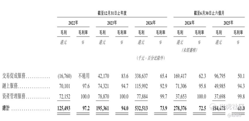 资产管理服务:为机构客户提供涵盖风险投资和二级基金投资在内的数字资产投资机会。截至2025年9月30日,在管资产达78亿港元,累计完成400+笔投资。旗下基金投资回报率超10倍,是行业平均水平的2倍。截至2024年底,公司是亚洲在管资产规模最大、总部位于香港的资产管理服务提供商。