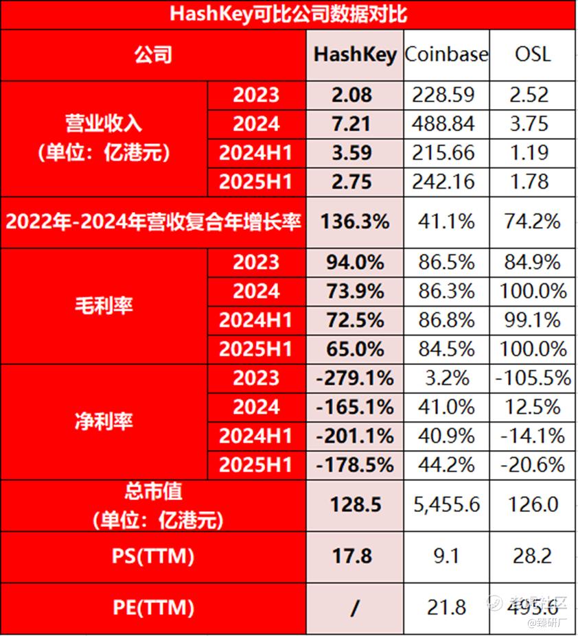 本文选取Coinbase和OSL作为HashKey的可比公司。