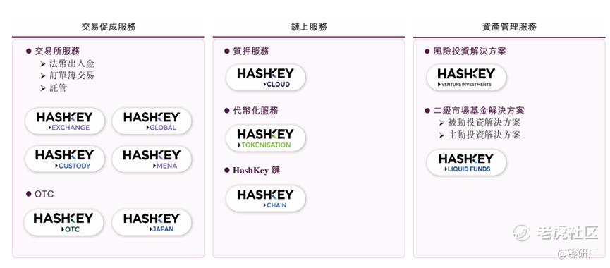 HashKey搭建了覆盖数字资产全产业链的生态系统,业务主要包含交易促成服务、链上服务和资产管理服务,全面满足零售投资者、机构客户等各类需求,是拥有持牌交易所+代币化能力+资产管理能力的一站式RWA解决方案综合体。