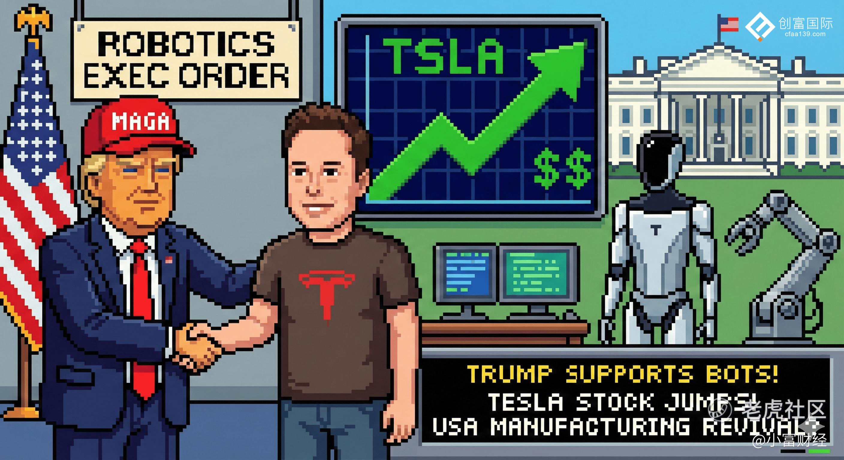 当华尔街还在用“电动车销量”来计算特斯拉(Tesla)的估值时,特朗普(Donald Trump)的一记回马枪,直接将这家公司推向了另一个维度。近日,随着特朗普团队传出将发布行政命令大力支持机器人产业,特斯拉股价应声大涨。