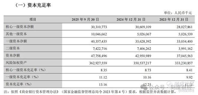 随着资产规模扩张,资本消耗也在加速。2025年三季度,该行核心一级资本充足率已降至8.35%,虽高于7.5%的监管底线,但安全空间已十分有限。
