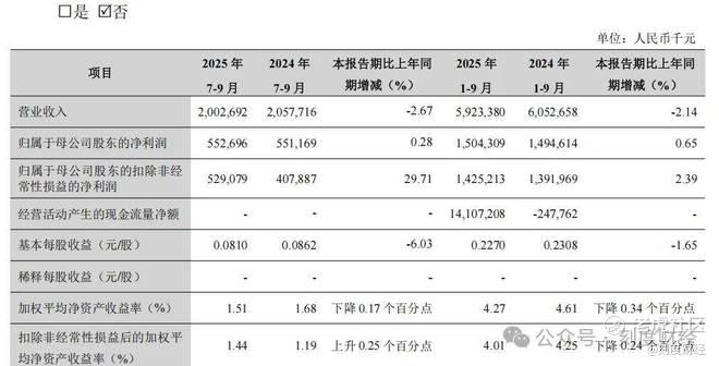 据最新披露数据,2025年1-9月该行实现营收59.23亿元,同比微降2.14%;归母净利润15.04亿元,同比仅增0.65%,在资产总额较年初增长7.62%至5233.6亿元的背景下,盈利增长与规模扩张的匹配度亟待提升。