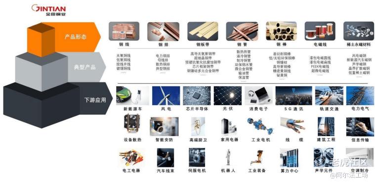 金田股份主要从事有色金属加工业务,主要产品包括铜产品和稀土永磁材料两大类,是国内产业链最完整、品类最多、规模最大的铜加工企业之一。