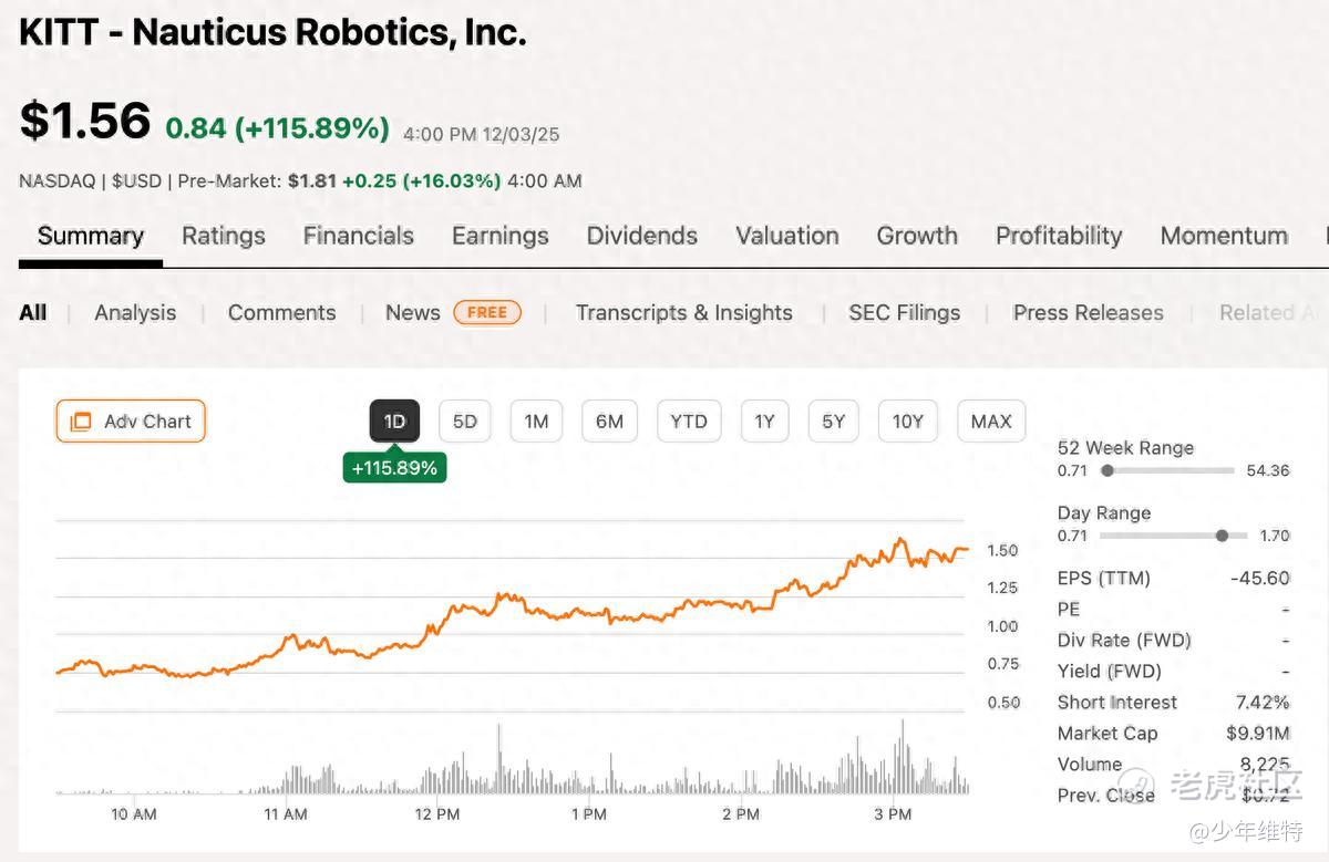 另一边是盘面。Nauticus Robotics 这类本来做水下机器人的小票,因为名字里带个“Robotics”,在“白宫要出机器人大招”的消息前后,一天内涨幅直接干到六七十个点,盘中一度翻倍,扫地机老牌 iRobot 也被资金一把抬起。 这种典型的“题材错杀+名字带飞”,本质是资金在给整个机器人方向做风险偏好的再定价。