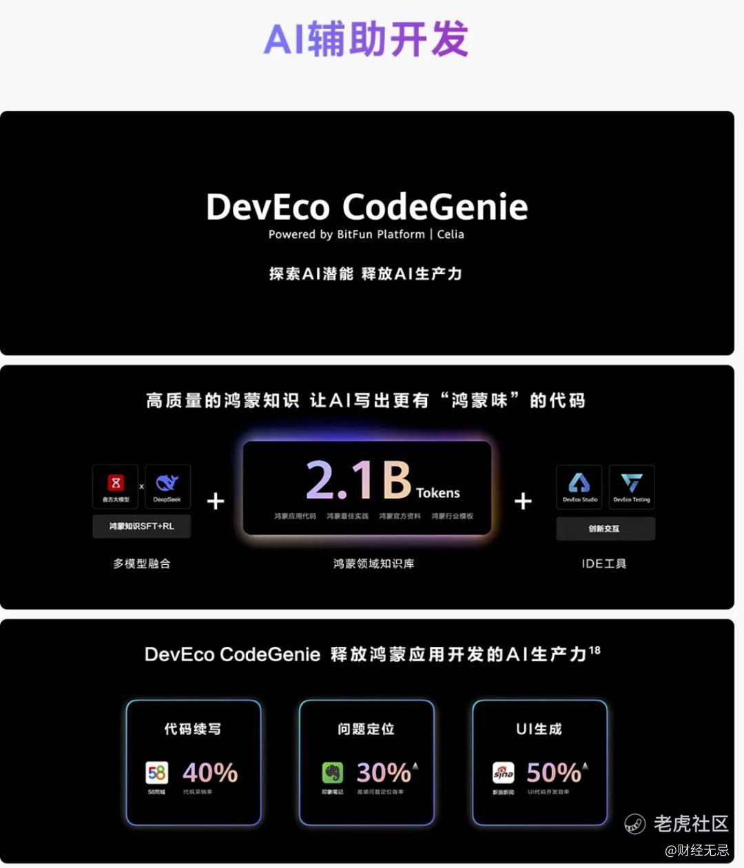 一方面,在鸿蒙,开发门槛和成本都在降低。比如,**在2025开发者大会期间发布的DevEco CodeGenie,在代码续写、问题定位、UI生成等高频场景表现优异,这一开发者的超级助手,能大幅提升开发效率。