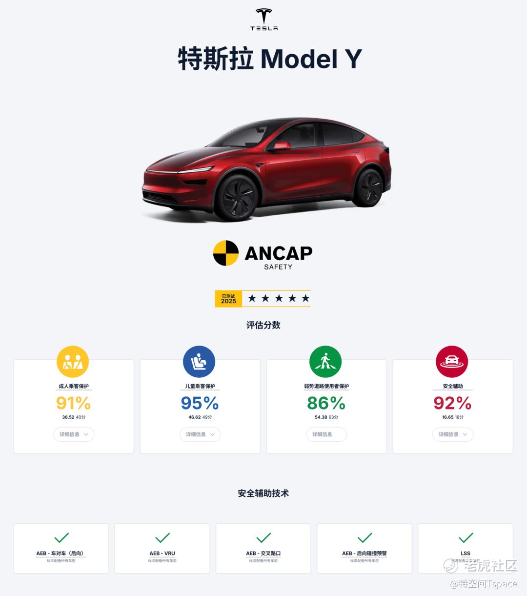 据了解,该奖项基于澳洲新车安全评鉴协会(ANCAP)的严苛测试数据评出。评委会强调,Model Y不仅获得了ANCAP五星综合安全评级,更在“行人保护”和“安全辅助系统”测试中再次斩获最高得分。