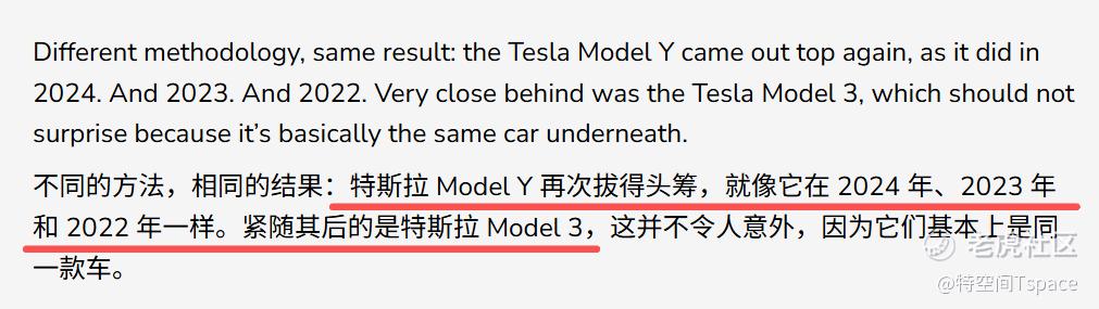 在安全表现方面,Model 3与Model Y包揽前两名。其中,Model Y更是已经连续第四年(2022-2025)在该项评选中获得“年度最安全车辆”的称号。
