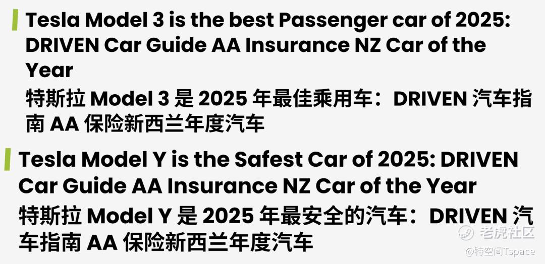 Model Y连续4年拿下新西兰“年度最安全车”,Model 3也被评为2025年“最佳乘用车”