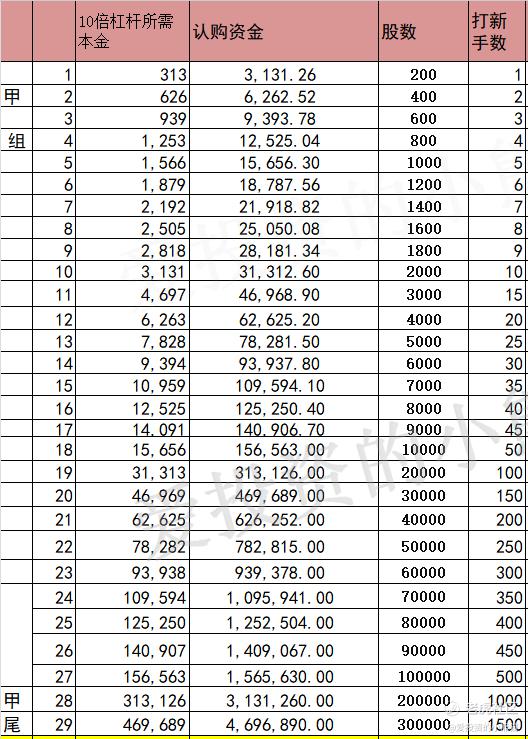 甲组的各档融资所需要的本金还有融资金额对应如下表: