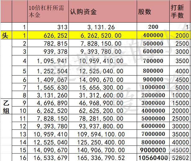 乙头需要认购资金627万,乙组的各档融资所需要的本金还有融资金额对应如下表: