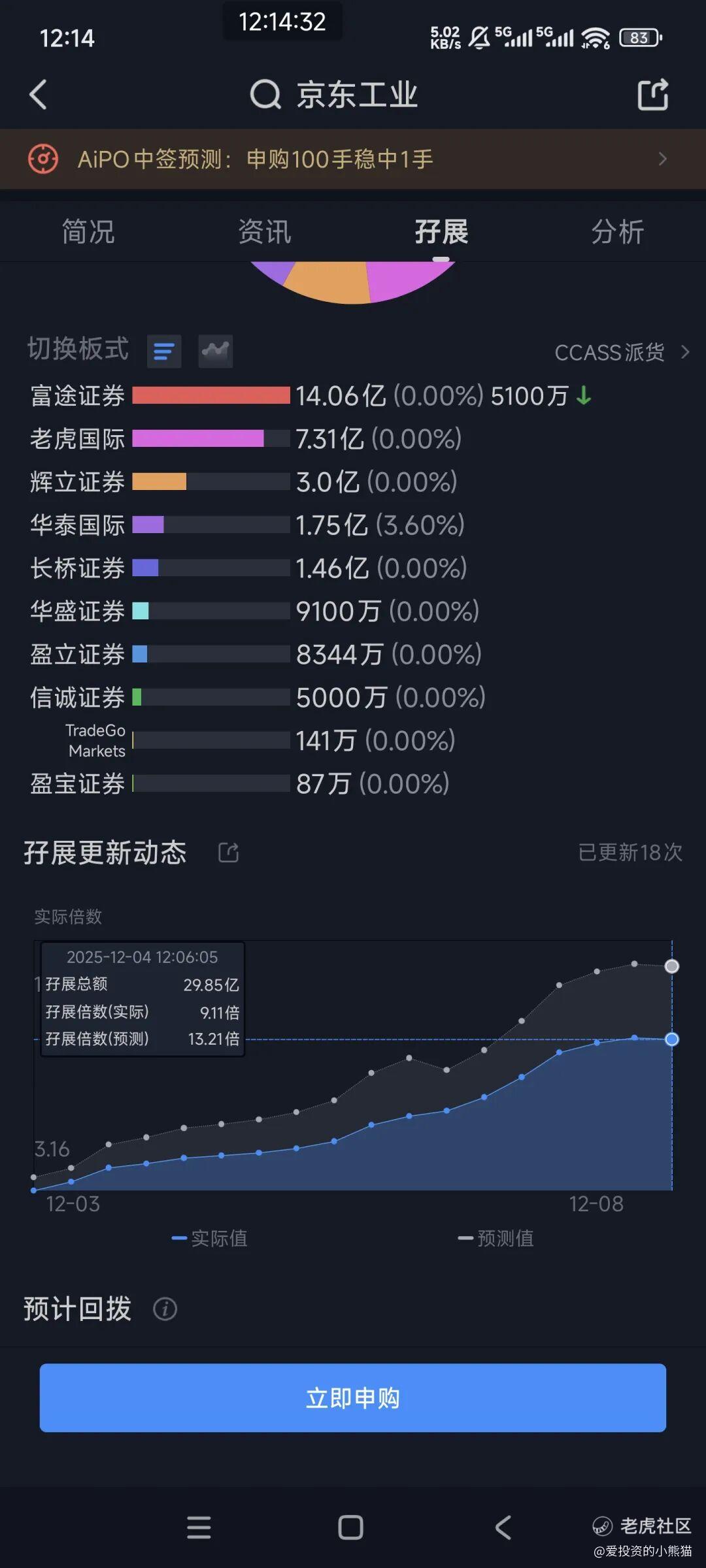 这一次京东工业这个票!这个票集资额:26.82亿港元-32.74亿港元,总市值340.00亿-414.96亿港元,募资额有点大。高于100亿港股通的门槛,公司如果想市场化发行,并且没人护盘,国配都是开盘抢跑的话,跌50%都照样入港股通,就看他有没有想往上做的动力。