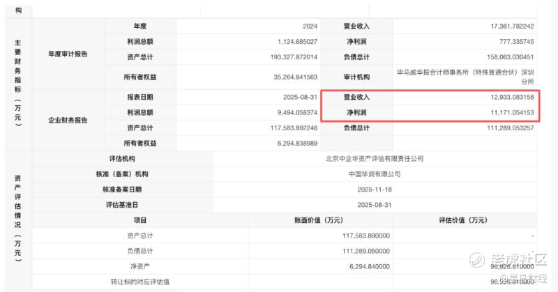 从财务数据来看,2025年前三季度,华润西安营收约为1.98亿元,净利润约229.53万元。资产评估报告显示,截至2025年6月底,华润西安资产总计约14.97亿元,负债总计约9.91亿元,净资产约5.06亿元,整体评估价值约8.85亿元,以9.7亿元的挂牌底价算,较评估价溢价约9.6%。