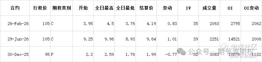 (3)美团:12月最大持仓范围100-137.5,窝轮牛熊街货分布90-110,今收98.1,上涨2.29%。期权盘路变化超过1000张的仓位如下,今天进场的大佬更多的是希望以后按照105的价格卖出美团。近期美团的基本面不太好,主要的利润板块受到了高德和抖音的夹击,外卖板块又要继续跟阿里大战,股价短期内大概率不会太好。