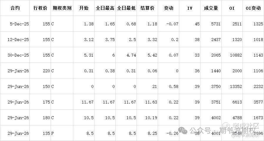 (2)阿里:12月最大持仓范围110-150,窝轮牛熊街货分布140-170,今收154.4,上涨0.52%。期权盘路变化超过1000张的仓位,感觉阿里短期内应该是窄幅震荡。