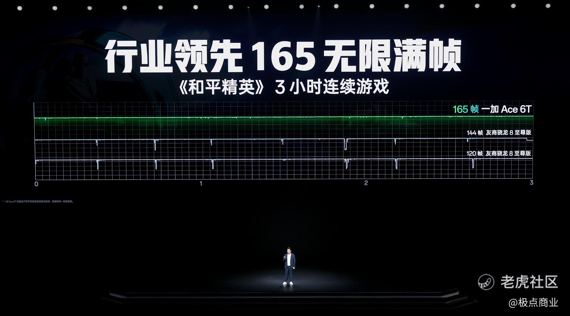 一加Ace 6T将独家自研的全新一代「风驰游戏内核」写入第五代骁龙8芯片底层,充分释放这颗芯片全部性能,大幅提升游戏表现。在风驰游戏内核的加持下,一加 Ace 6T可以轻松驾驭 165 超高帧游戏,实现同档唯一 165 无限满帧游戏体验。相比主流手机的120帧,一加Ace 6T的165 超高帧游戏每秒画面显示数量多45帧,画面显示速度提升27%,全链路操作时延缩短10ms,每秒操控速度提升17%,操作响应快人一步,不仅提高了游戏的流畅性,也提高了游戏的胜率。实测显示,一加 Ace 6T连续运行《和平精英》3小时,帧率持久流畅,帧率稳定性优于同等环境下友商骁龙8至尊版机型的120帧或144帧游戏表现,且在1% Low帧表现上也做到引领。
