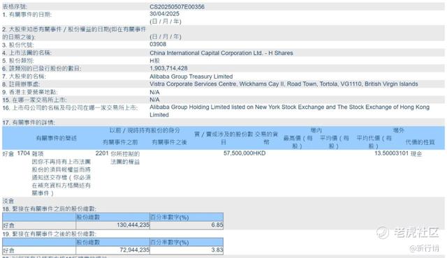 随后的2月和4月,阿里两次减持中金公司股份,合计套现约17.53亿港元(约16亿元人民币。
