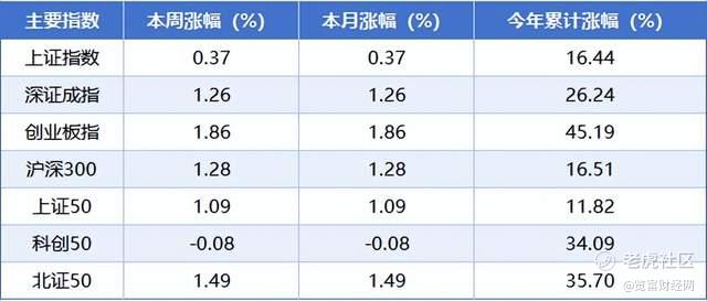 从年度表现来看,创业板指今年以来累计涨幅达到45.19%,处于领跑位置;上证指数年累计涨幅为16.44%,上证50年累计涨幅为11.82%,科创50年累计涨幅为34.09%,北证50年累计涨幅为35.70%。