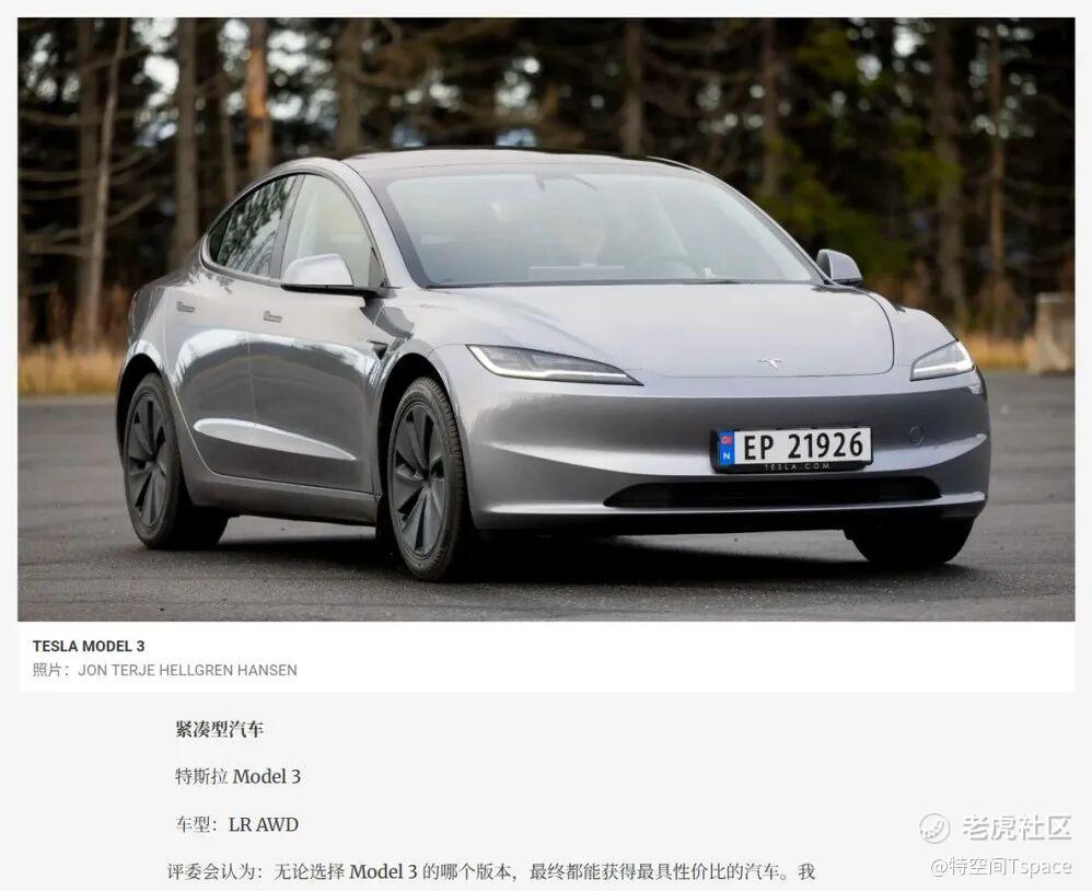 特斯拉超越燃油车成挪威“年度最佳购车选择”,Model 3/Y分获“最佳纯电轿车”与“最佳家庭用车”