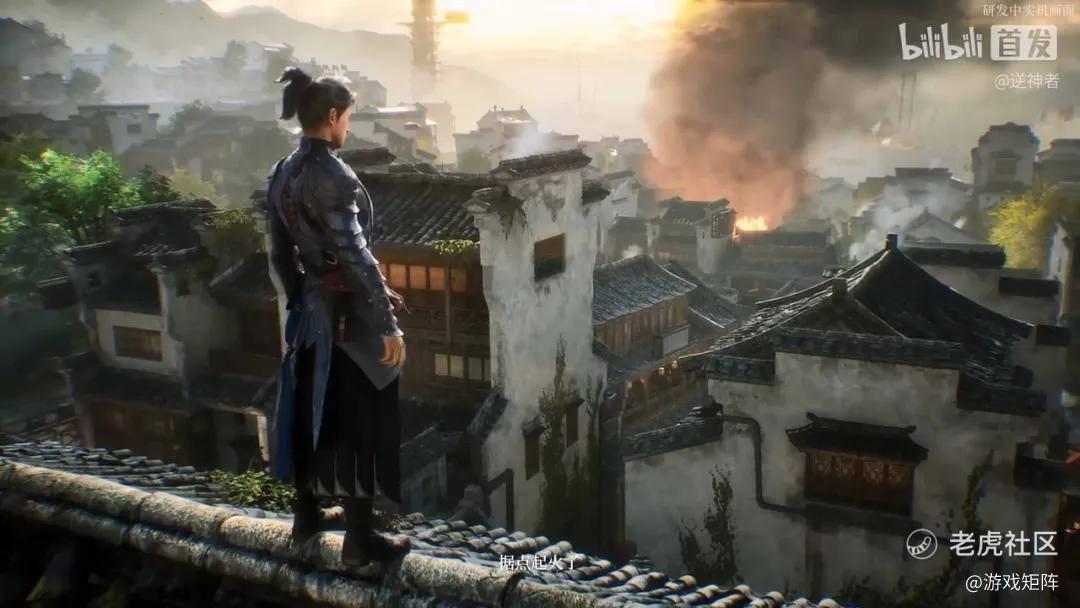 从7分多钟的实机视频可以看出,《逆神者》首先给人留下深刻印象的就是游戏独特的美术风格。视频开场就展示了一片古色古香的徽派建筑,青砖白墙的风景是国人非常熟悉的画面。