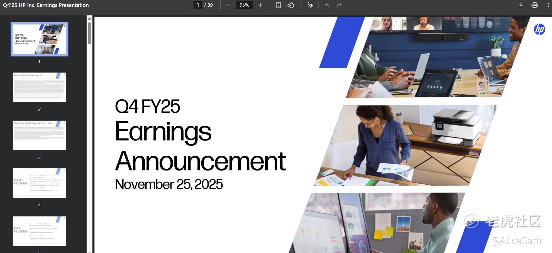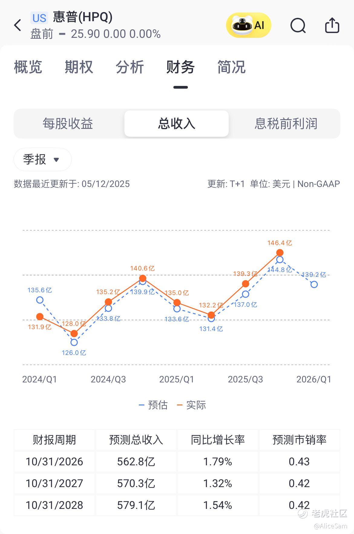 如果你看好 AI PC 渗透率提升,HP 是稳健现金流 + 分红回报的组合,适合“防御 + 成长”策略,作为长期投资,还是非常不错的一个标的。关注起来先 [得意]
