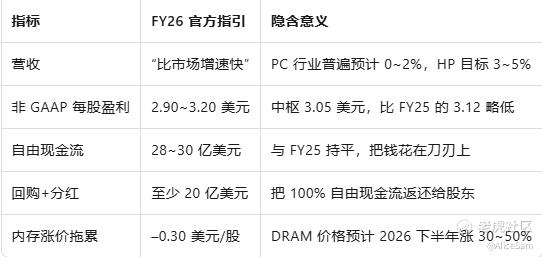 看看下面图,这是2026 财年他们管理层给的前瞻,有点偏保守,难道是为了方便到时“超预期”?[鬼脸] 他们的盈利略降主因是内存涨价,应该不是经营不善,而且他们公司仍准备“掏空”现金流,去好好的回馈股东,说明对自家现金生成能力,还是有信心的。