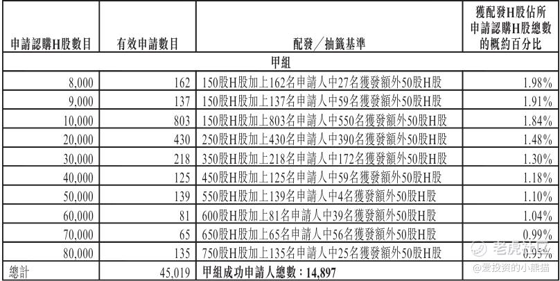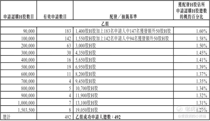遇见小面(02408.HK)乙组官方披露的中签名单: