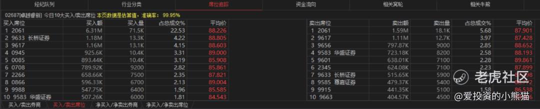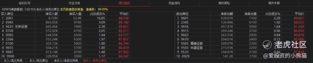 卓越睿新(02687.HK)买盘席位有2061、0945、9633等,卖盘第一席位是散户为主的9601。