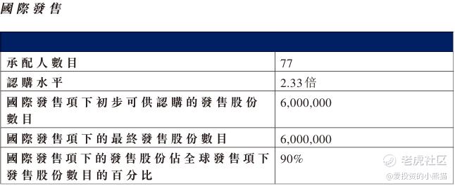 卓越睿新(02687.HK)国际配售总共77人,认购额2.33倍。