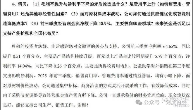这种“高端引领、中端托底”的产品结构优化,直接推动公司盈利能力逆势提升,前三季度销售毛利率达到64.65%,同比增长0.51个百分点,在行业价格战愈演愈烈的背景下,展现出较强的产品竞争力。